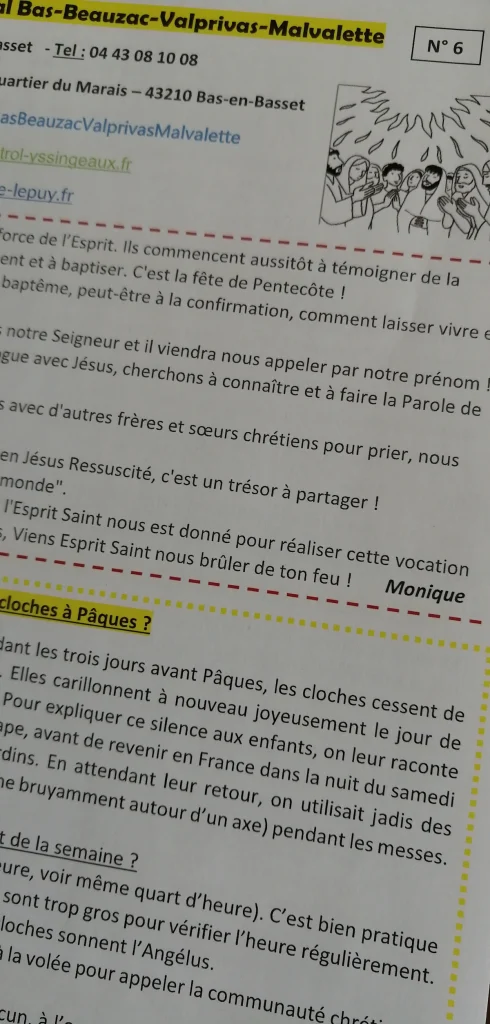 Vous trouverez des témoignages : chacun doit pouvoir s’exprimer dans ce journal, des boîtes communication sont présentes dans chaque église, n’hésitez pas à donner vos idées, vos témoignages des merveilles